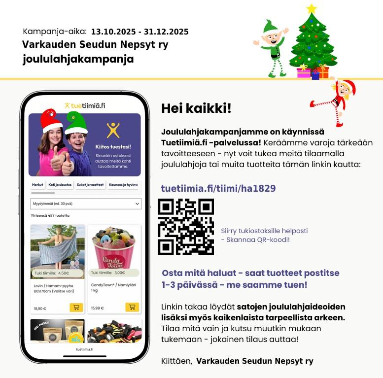 "Varkauden seudun nepsy-perheiden vertaisverkosto" on Varkauden Seudun Nepsyt ry:n ylläpitämä Facebook-ryhmä nepsy-vanhemmille, joiden lapsella on neuropsykiatrinen häiriö (adhd, autismikirjo, tourette, kehityksellinen kielihäiriö) tai siihen viittaavia oireita.
