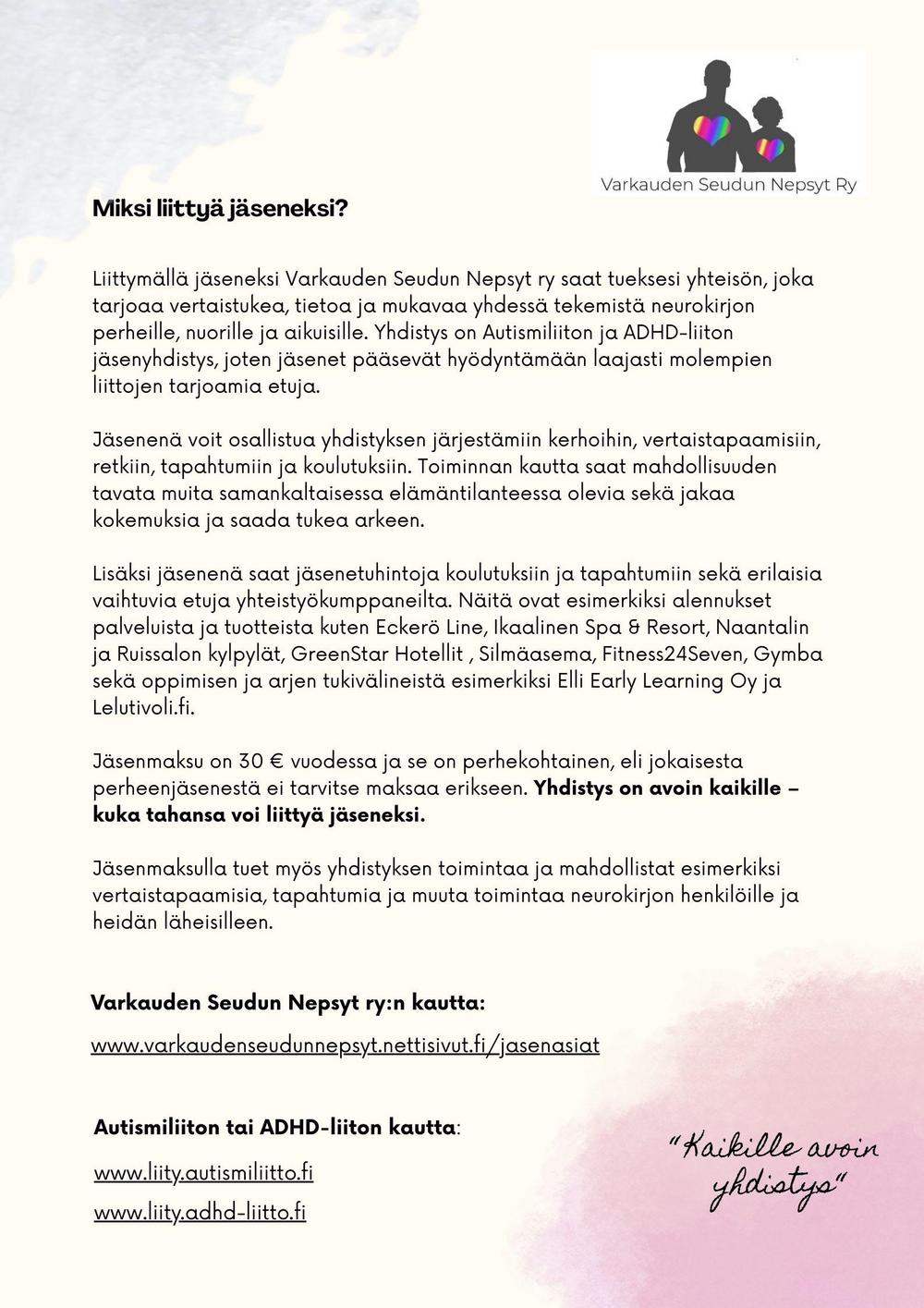 Varkauden Seudun Nepsyt ry on Autismiliiton ja ADHD-liiton jäsenyhdistys.
